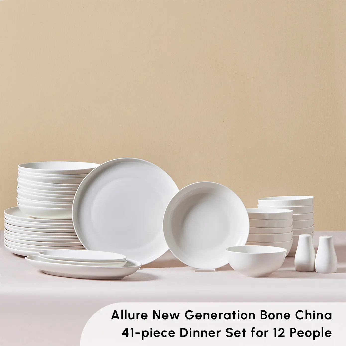 Karaca Forever Bone China Allure 41-Piece Dinner Set for 12 People, White