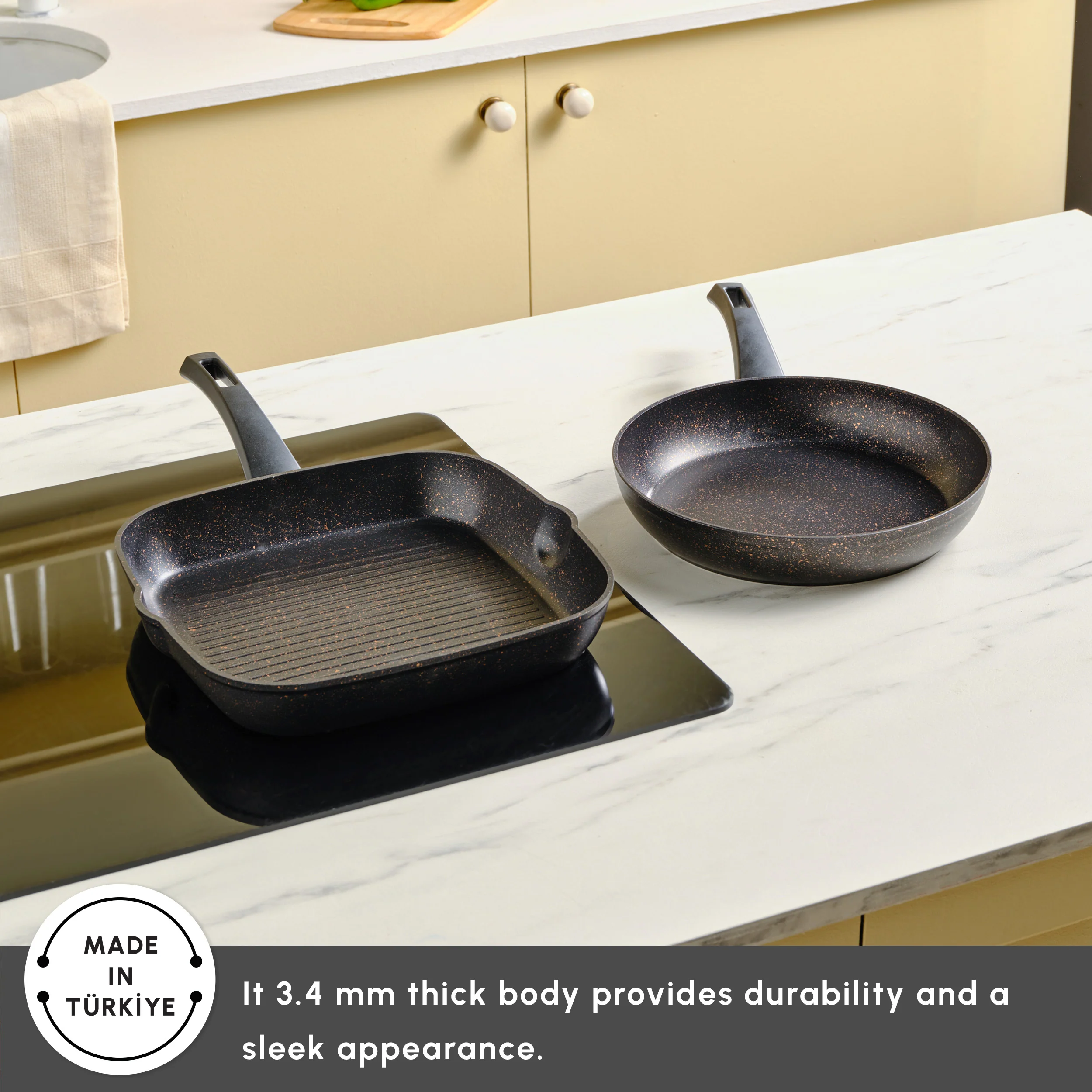 Karaca Blackgold Biogranite 2-Piece Induction Pan-Grill Set, Black Gold