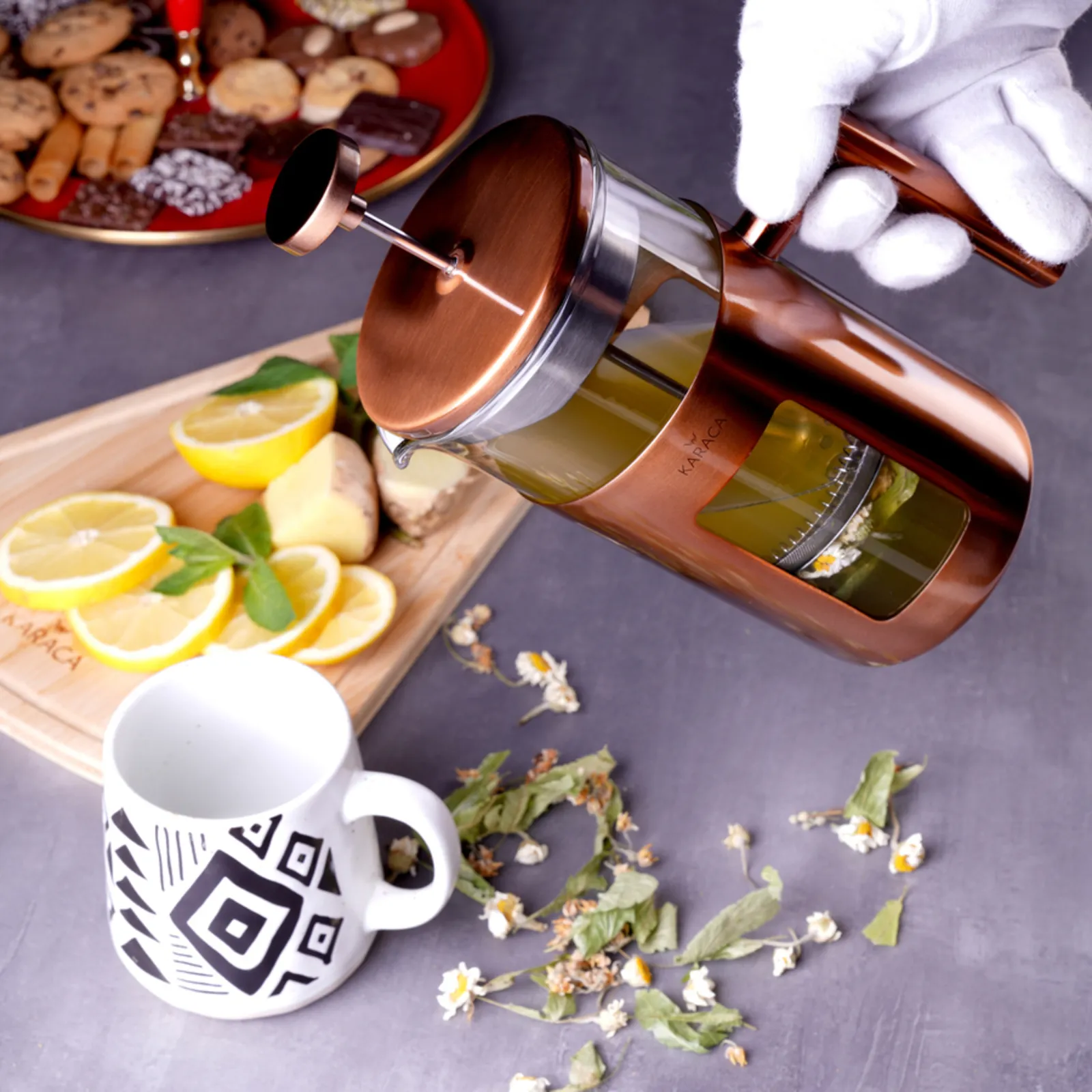 Karaca Borosilicate Glass Copper French Press, 1000ml, Copper Silver