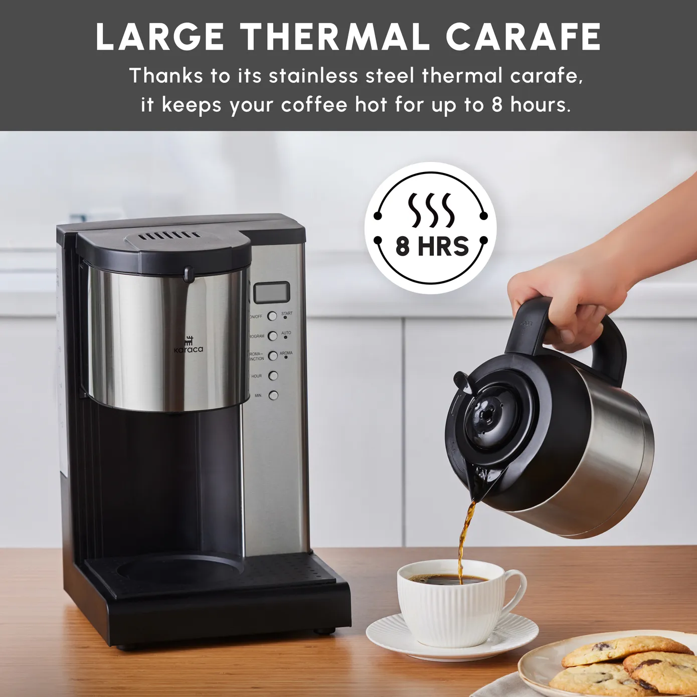This set includes Karaca Coffee Art Aroma Filter Coffee Machine and its Compatible Stainless Steel Thermal Carafe.
