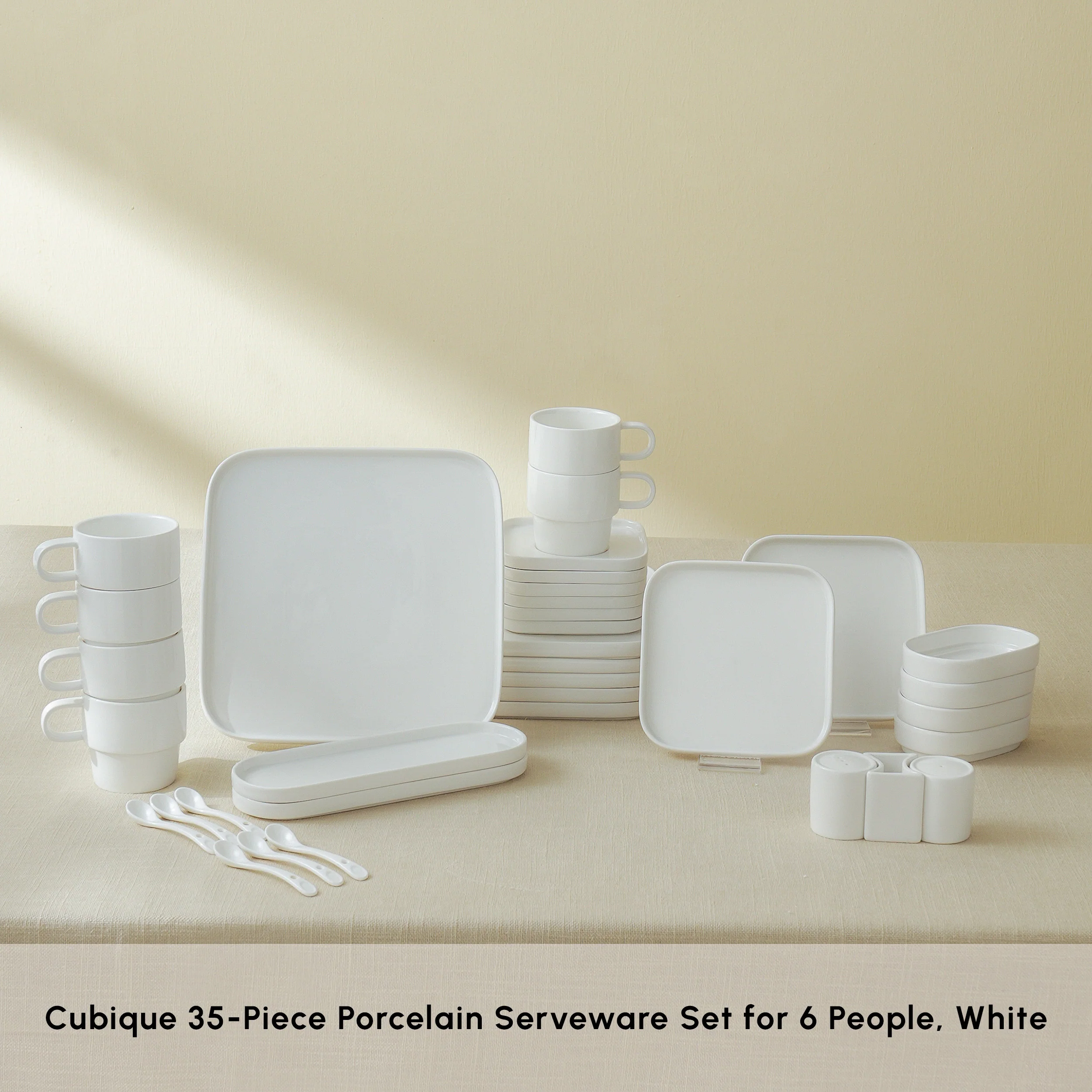 Karaca Stream Pure Stream Bone China Cubique 35-Piece Serveware Set for 6 People, White