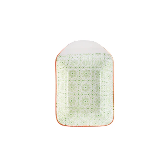 Karaca Floral Porcelain Rectangle Snack/Sauce Bowl, 10cm, Green