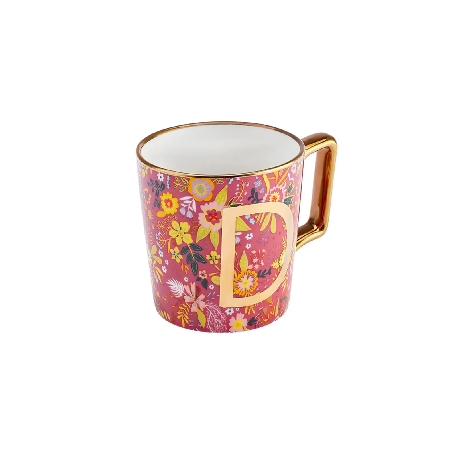 Karaca Flower Porcelain Letter D Mug, 350ml, Multi—