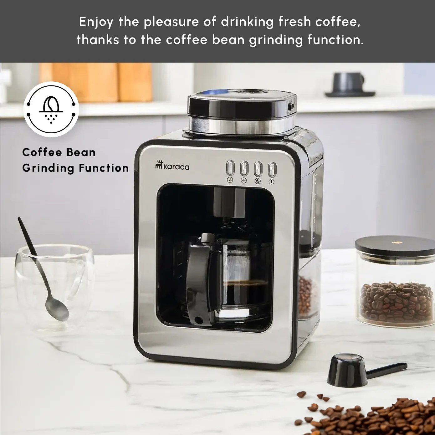 Karaca Grindmaestro Filter Coffee Maker with Built-in Grinder, 0,5L, 600W, Inox