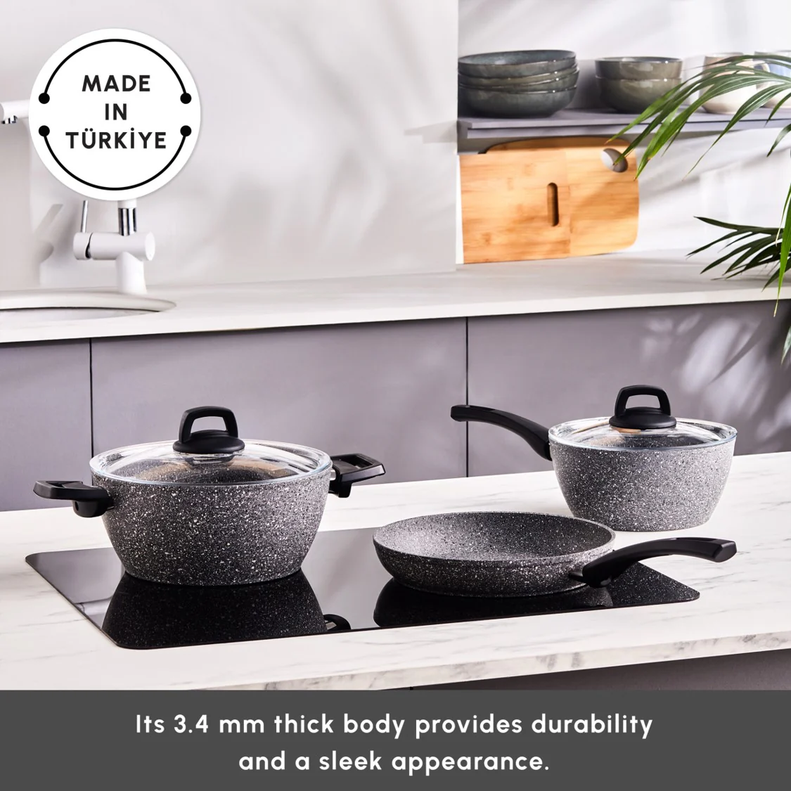 Designed to meet the needs of modern kitchens, the Karaca Gris Biogranite Cookware Set is induction-compatible, ensuring effortless cooking on all types of stovetops. The efficient heat distribution ensures even cooking results, while the sturdy construction provides stability and reliability. Say goodbye to unevenly cooked meals and hello to perfectly cooked dishes every time.