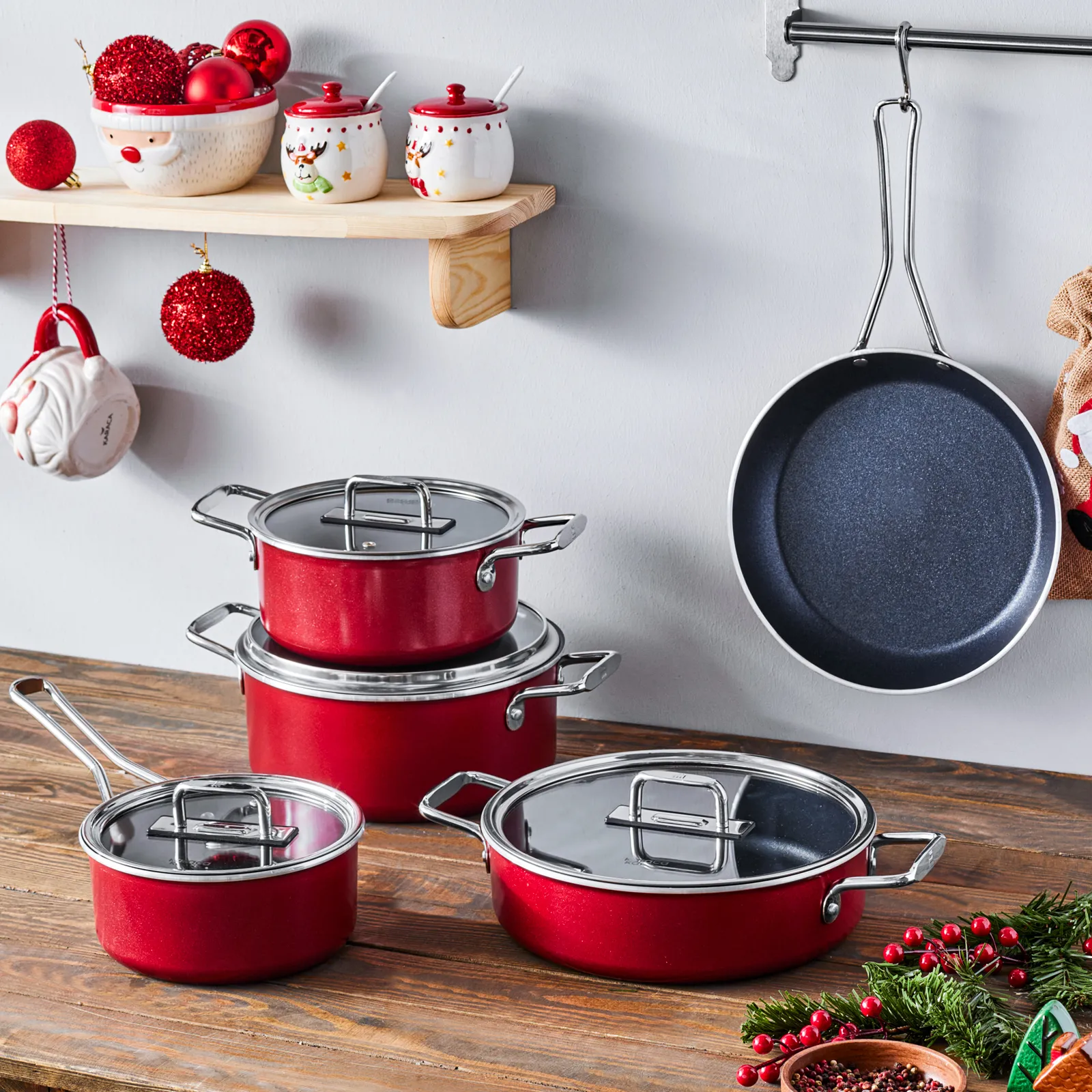 Karaca Mastermaid BioDiamond 9-Piece Non-Stick Cookware Set, Imperial Red Silver