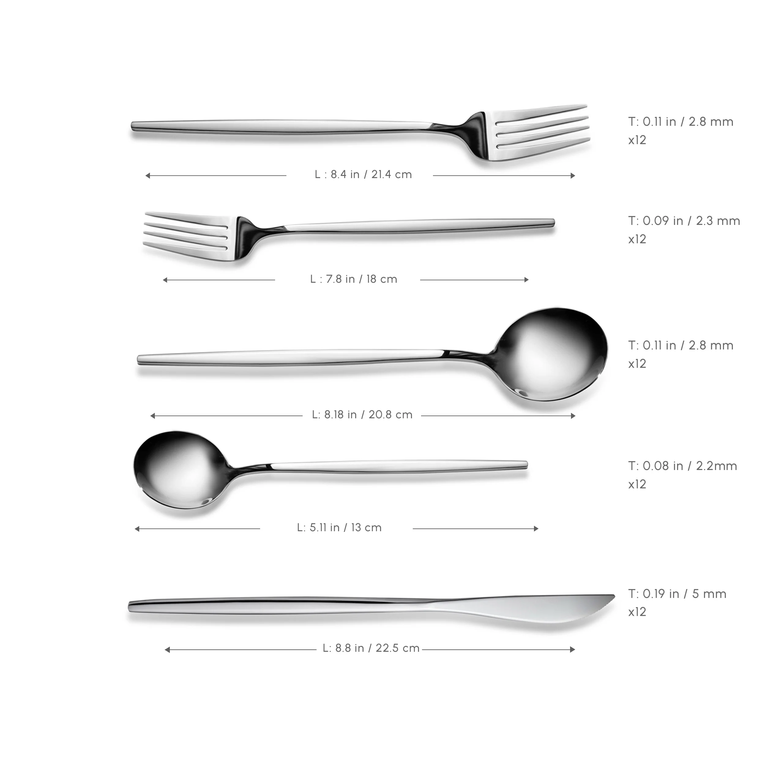 - 12 x Dessert Spoon (13cm)