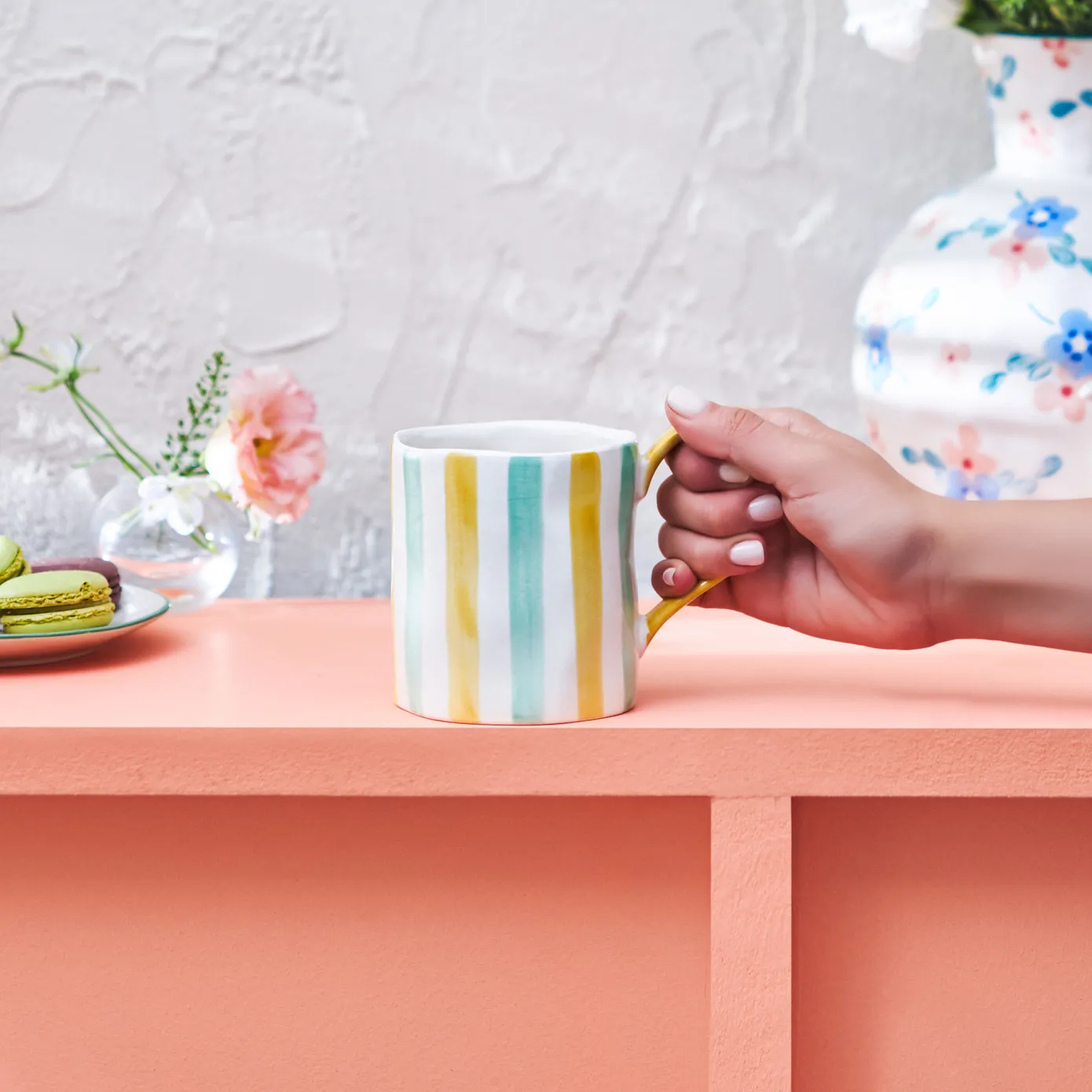 Painted meticulously by hand, the patterns on these mugs showcase the individual artistry of each piece. Embrace the beauty of diversity as each mug boasts its own unique stripes, adding personality to your beverage experience.