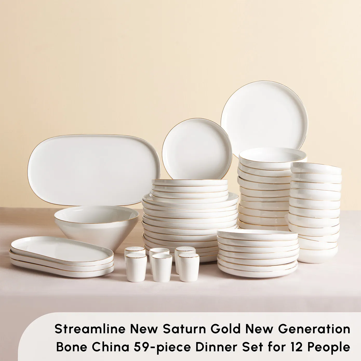 Karaca Streamline New Saturn 59-Piece Dinner Set for 12 People, White Gold