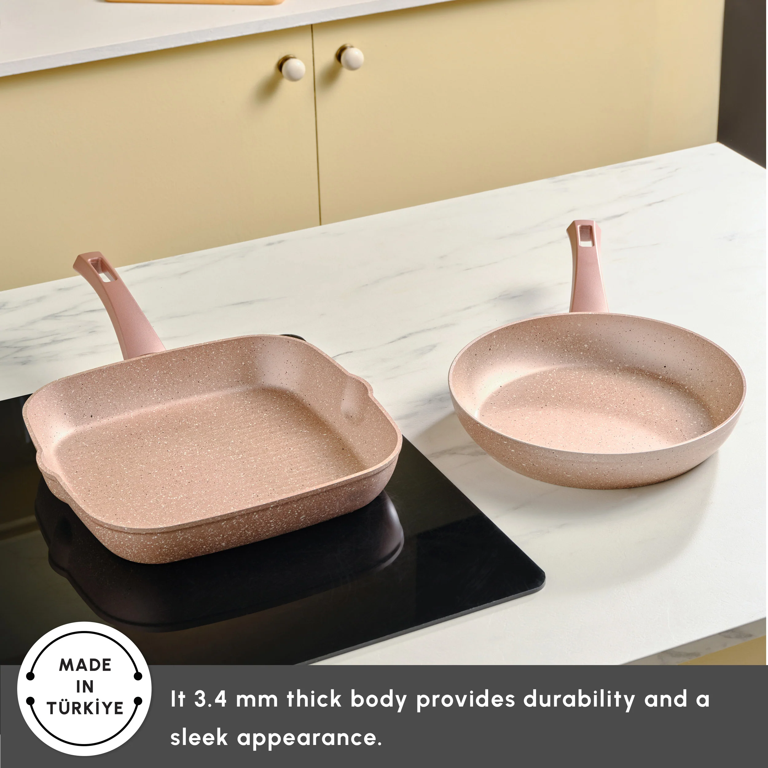 Karaca Rosegold Biogranite 2-Piece Induction Pan-Grill Set, Rose Gold