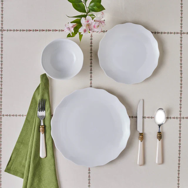 Crafted from premium porcelain, each piece features a delicate scalloped edge, adding a refined touch to your table setting. The pure white finish complements any décor, effortlessly blending with both classic and contemporary styles.