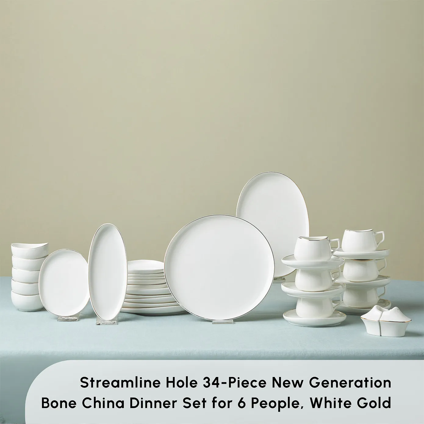 Karaca Stream Pure Hole 34-Piece Serveware Set for 6 People, White Gold