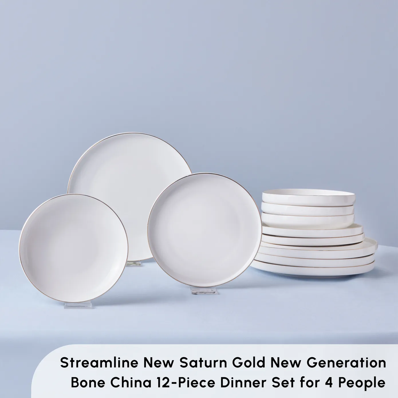 Karaca Streamline New Saturn 12-Piece Bone China Dinner Set for 4 People, Gold
