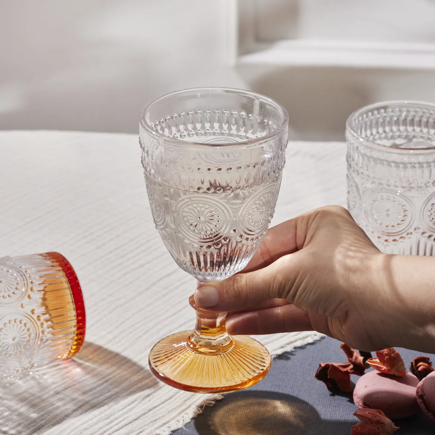 Karaca Sunflower Wine Glass, 314ml, Transparent Orange