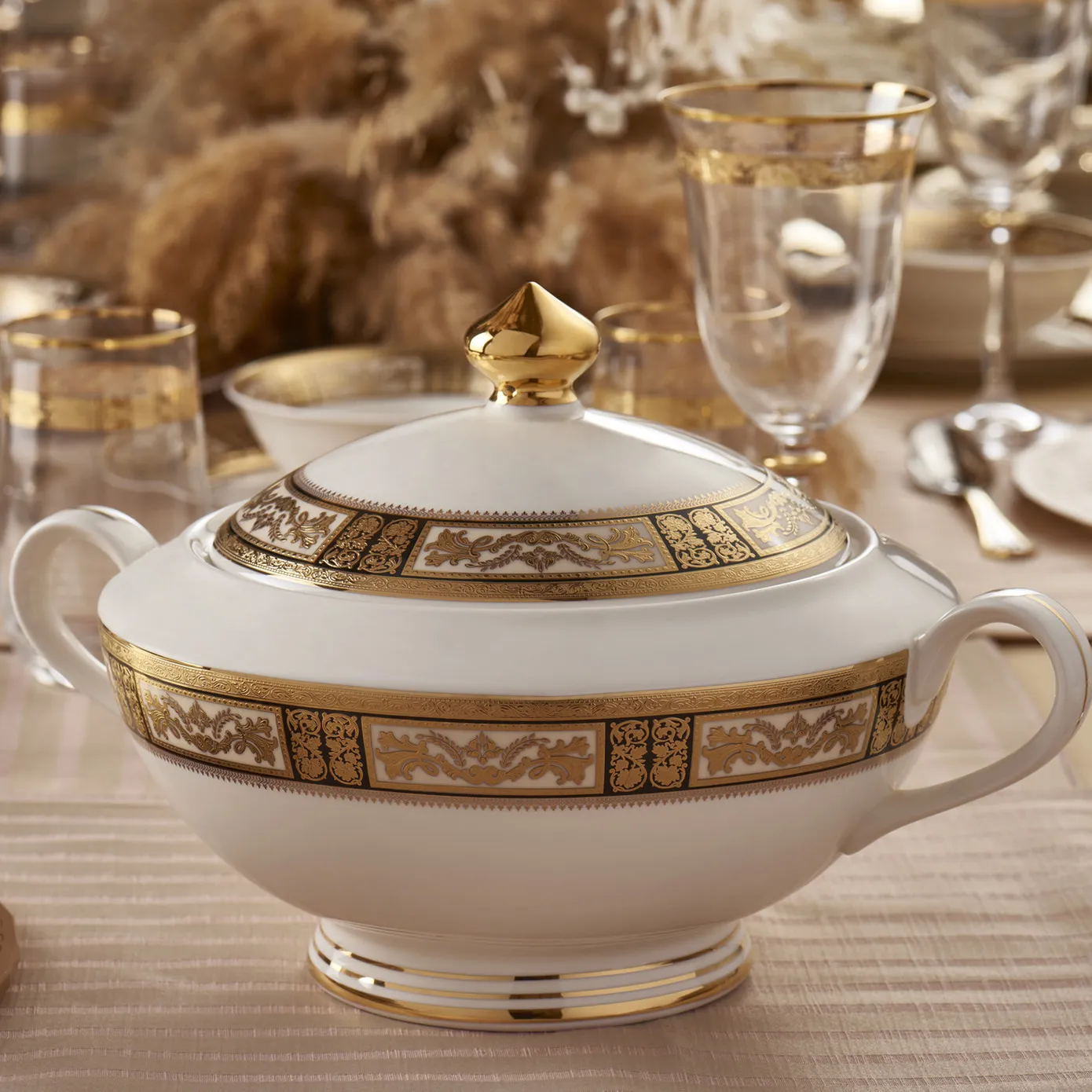 Weimar Porzellan represents a (piece of) centuries-old German heritage, visualising the bold ideas of the time rendered possible thtough impeccable craftsmanship. Brought to life through tradition and experience, the porcelain used in the collection tells a story in its every design, combining German cultural heritage, elegance, nobility and timeless beauty. It reflects the finest gold accents of Baroque art, the splendid line of relief patterns, the special touch unique to the palaces. The striking motifs created by the hands of master craftsmen, combined with today's modern and noble white porcelain texture, pass on the splendour of the palace from generation to generation. Weimar Porzellan products, which fuse sparkling golden touches and patterns, display flawless appearance which project a reflection of luxury and splendid brilliance with the layered effect of its high-embossed, decorative (decal) patterning/designs.